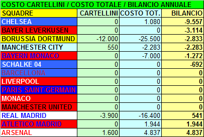 con la Serie A. Il tabellone riepilogativo relativo ai costi/ricavi delle